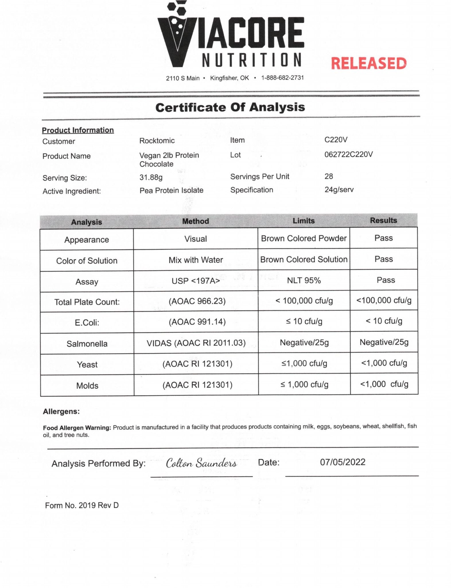 Vegan Protein is formulated to support muscle growth, immunity, digestive health, increase satiety, increase fat burning, and boost metabolic rate. Our product is synthesized utilizing the latest scientific research and formulated with high quality ingredients. Our formula provides a plant-based source of protein that contains all the essential and branched-chain amino acids with an amino acid profile similar to whey protein. Our Vegan protein contains a super fruit antioxidant blend in a delicious chocolate flavor! Our formula is third party independently tested for heavy metals, impurities, made in the USA, GMP certified, and produced in an FDA registered facility. 1% of the supplements on the market can match our world class standards. |