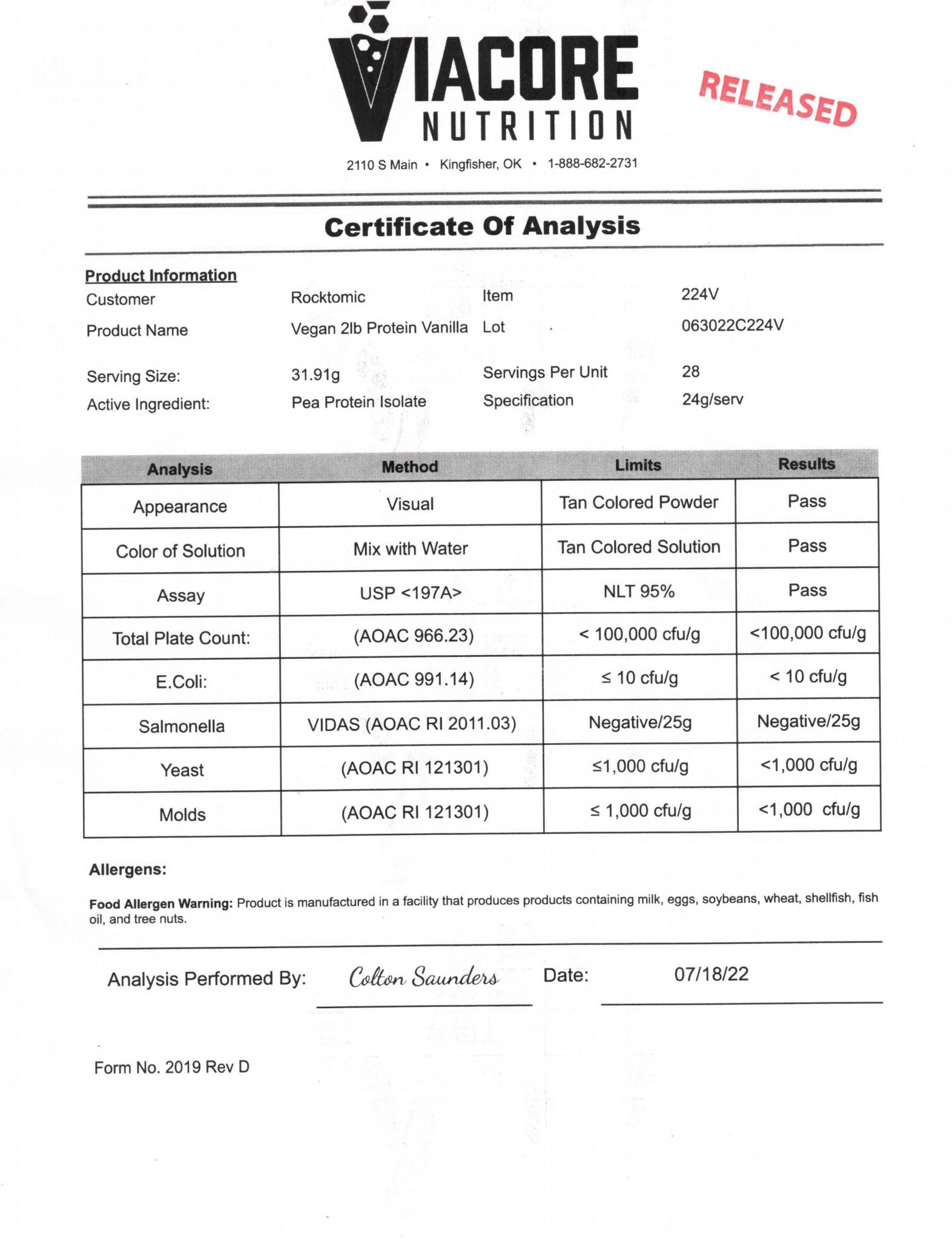 Vegan Protein is formulated to support muscle growth, immunity, digestive health, increase satiety, increase fat burning, and boost metabolic rate. Our product is synthesized utilizing the latest scientific research and formulated with high quality ingredients. Our formula provides a plant-based source of protein that contains all the essential and branched-chain amino acids with an amino acid profile similar to whey protein. Our Vegan protein contains a super fruit antioxidant blend in a delicious vanilla flavor! Our formula is third party independently tested for heavy metals, impurities, made in the USA, GMP certified, and produced in an FDA registered facility. 1% of the supplements on the market can match our world class standards. |