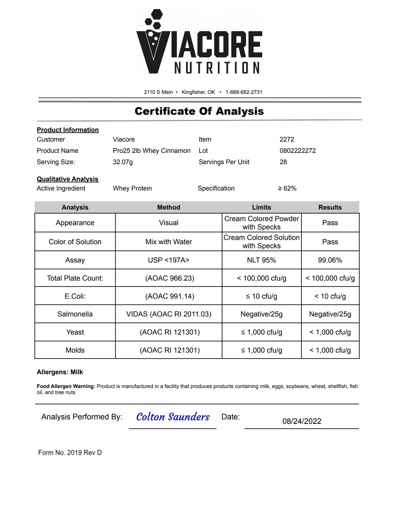 Cinnamon Swirl Whey is formulated to support muscle growth, immunity, digestive health, increase satiety, and boost metabolic rate. Our product is synthesized utilizing the latest scientific research and formulated with the purest sources of whey protein concentrate to produce world class results. Our formula is third party independently tested for heavy metals, impurities, made in the USA, GMP certified, and produced in an FDA registered facility. 1% of the supplements on the market can match our world class standards. |
