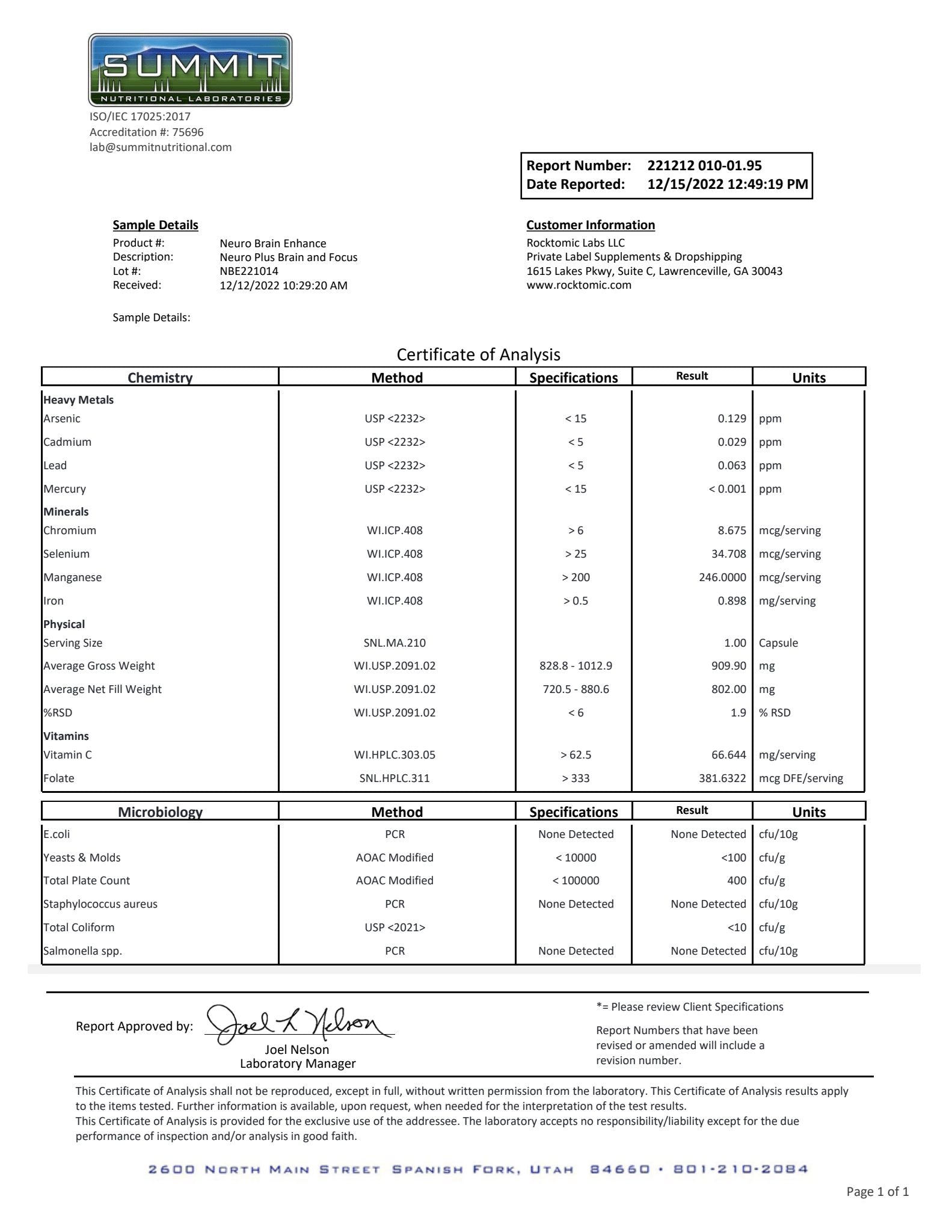 Neuro Plus is formulated to boost cognitive function, mental clarity, focus, immune function, and energy production. Our product is synthesized utilizing the latest scientific research and formulated with high-quality ingredients. Our formula is third-party independently tested for heavy metals, impurities, made in the USA, GMP certified, and produced in an FDA registered facility. 1% of the supplements on the market can match our world-class standards. |