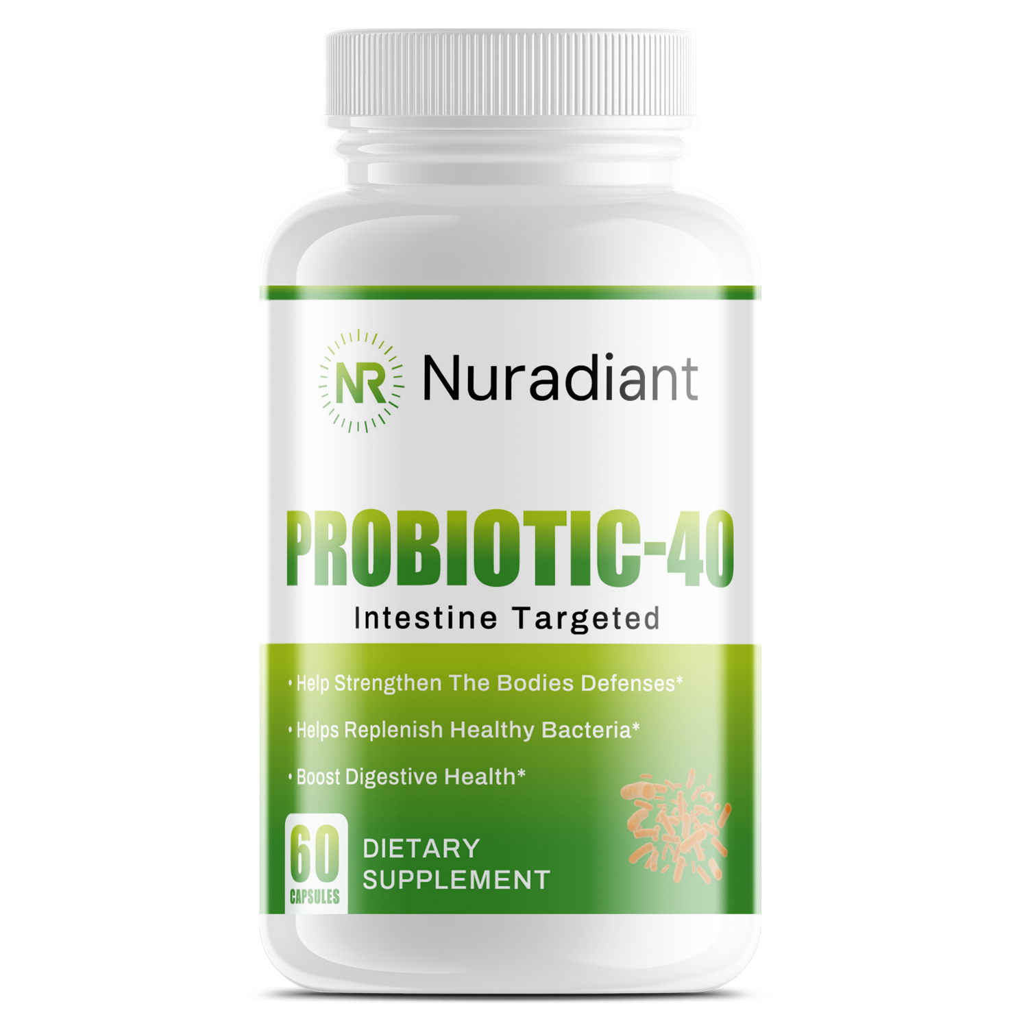 Probiotics 40 Billion is a blend of 4 strains (40 billion CFU/g) of Probiotic Bacteria. Our Probiotic supplement is designed to provide a high potency and balance of beneficial bacteria. By taking this product on a regular basis Probiotic-40 can help assist in maintaining healthy intestinal flora. This supplement also contains FOS to help with acidophilus and bifidus.*
