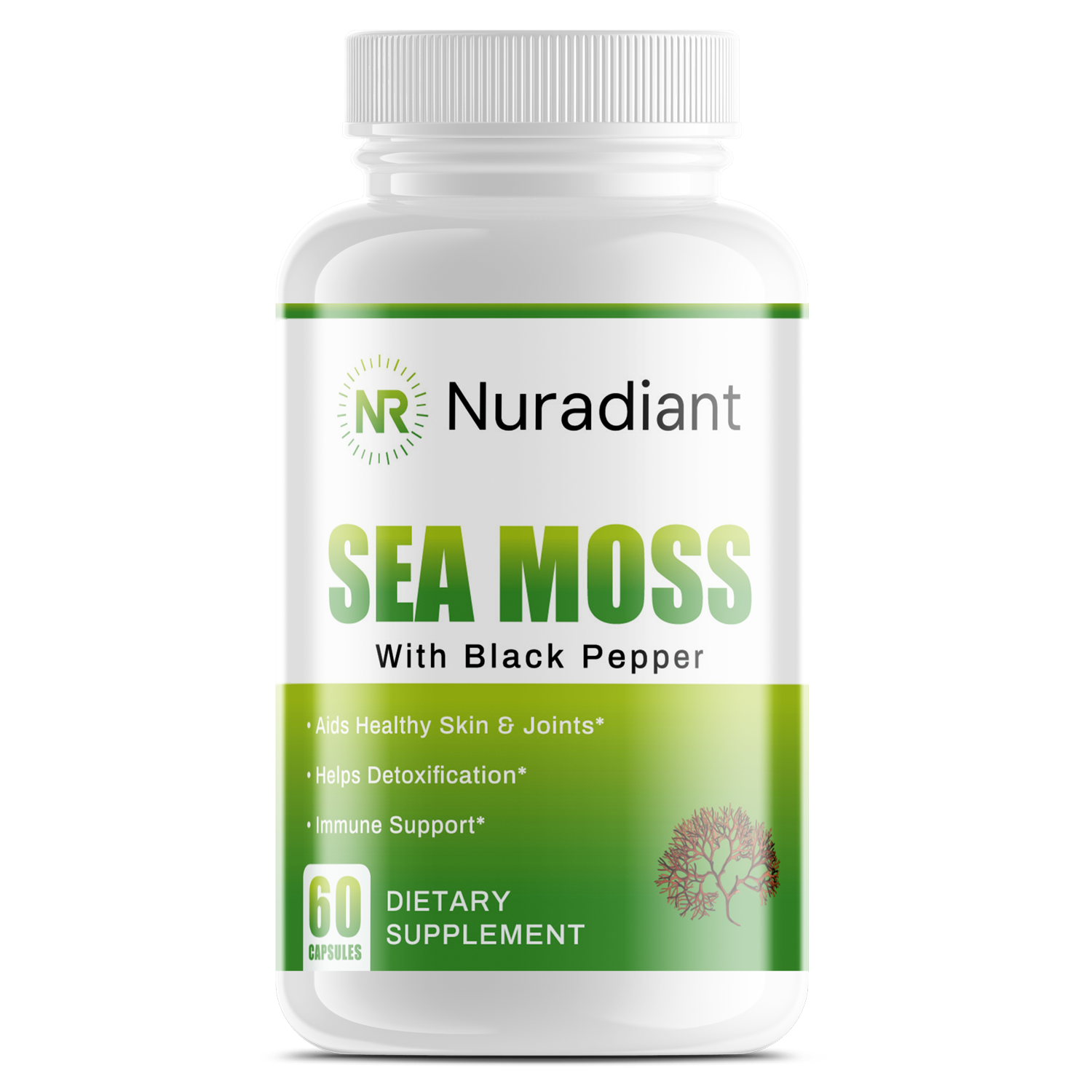 Irish Sea Moss capsules are formulated to support cardiovascular health, blood sugar regulation, cognitive function, detoxification, increased energy, gut health, and reduced inflammation.